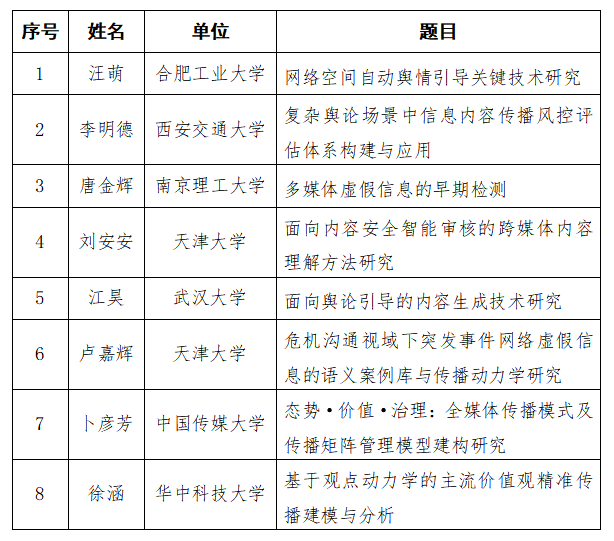 傳播內容認知國家重點實驗室2020年度開放課題資助項目立項公示